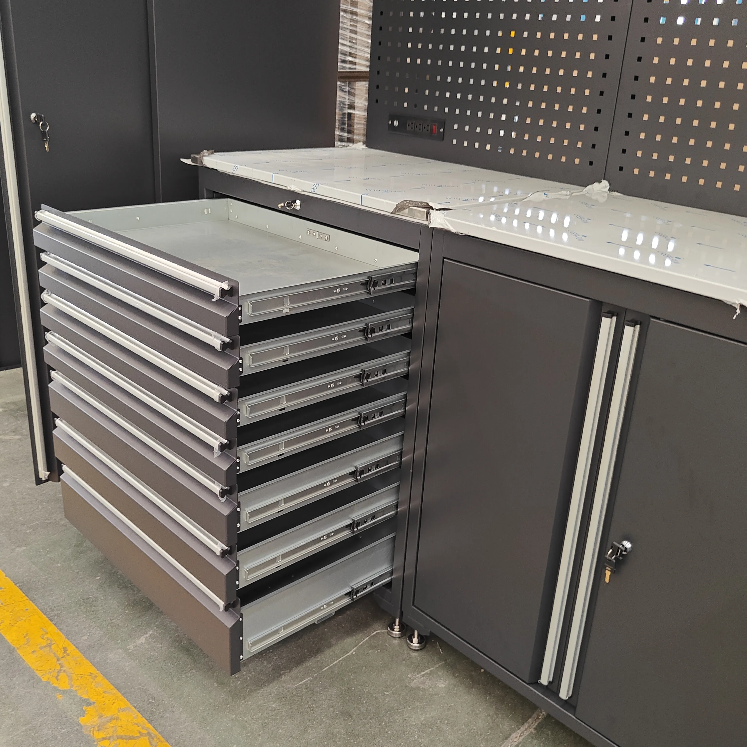 ຕູ້ເຄື່ອງມືໃຊ້ມືອາຊີບ Garage Cyjy ແມ່ນວິທີແກ້ໄຂການເກັບຮັກສາອຸດສາຫະກໍາທີ່ຖືກອອກແບບມາເພື່ອສະພາບແວດລ້ອມການເຮັດວຽກທີ່ຮຸນແຮງ. ຕູ້ເຄື່ອງມືທີ່ມີຫນ້າທີ່ຫນັກນີ້ແມ່ນເຮັດດ້ວຍເຫຼັກກ້າເຢັນແລະມີຄວາມຕ້ອງການຄວາມຕ້ອງການຂອງຜູ້ໃຊ້. ມັນໄດ້ຖືກຕິດຕັ້ງດ້ວຍ 17 ເຄື່ອງແຕ້ມທີ່ມີຄວາມສູງທີ່ສາມາດປັບແຕ່ງໄດ້, ສະຫນອງຄວາມສາມາດຂອງອົງກອນພິເສດແລະມີປະສົບການການເຂົ້າເຖິງເຄື່ອງມືທີ່ສະດວກ.