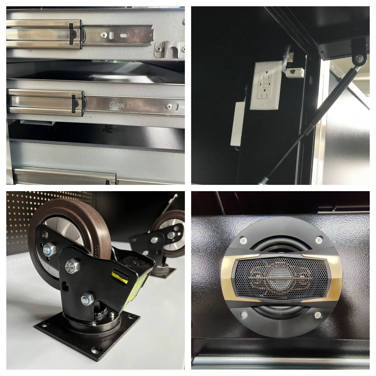 ຕູ້ເຄື່ອງມື Garage Garage Module ແມ່ນລະບົບການເກັບຮັກສາເຄື່ອງມືປະກອບດ້ວຍໂມດູນທີ່ເປັນເອກະລາດຫຼາຍແບບ. ໂມດູນແຕ່ລະອັນມີຫນ້າທີ່ສະເພາະແລະບ່ອນເກັບມ້ຽນ, ເຊັ່ນ: ໂມດູນ Drawer ສໍາລັບເກັບມ້ຽນເຄື່ອງມືຂະຫນາດນ້ອຍແລະຕູ້ປະຕູຕູ້ສໍາລັບເຄື່ອງມືຫຼືອຸປະກອນທີ່ຢູ່ອາໃສ. ຜູ້ໃຊ້ສາມາດປະສົມໂມດູນເຫຼົ່ານີ້ໂດຍອີງໃສ່ຄວາມຕ້ອງການຕົວຈິງຂອງພວກເຂົາໃນການສ້າງລະບົບການເກັບຮັກສາເຄື່ອງມືທີ່ເປັນສ່ວນຕົວ. ເມື່ອປຽບທຽບກັບຕູ້ເຄື່ອງມືແບບປະສົມປະສານແບບດັ້ງເດີມ, ມັນສະຫນອງຄວາມຍືດຫຍຸ່ນແລະປັບຕົວ, ໃຫ້ການປັບຕົວຕາມການປ່ຽນແປງຂອງເຄື່ອງມືແລະປະເພດຕ່າງໆ, ໄດ້ຮັບການປັບແຕ່ງສ່ວນຕົວ.
