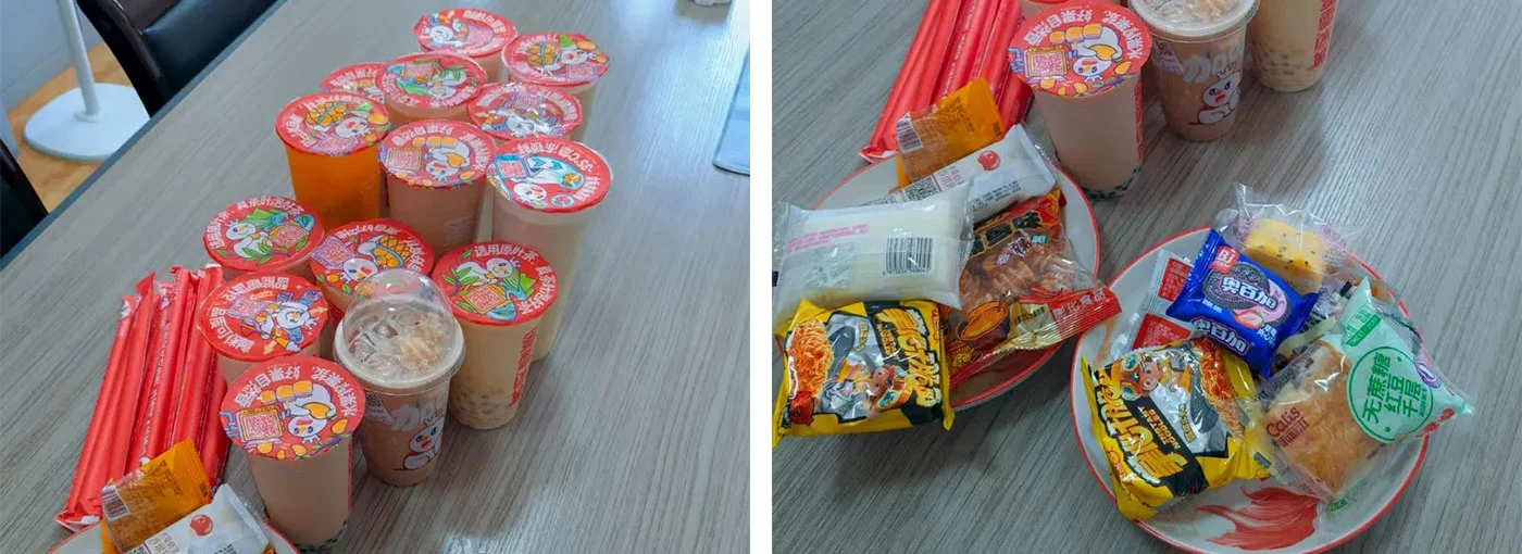 ໃນວັນທີ 7 ສິງຫາ. ຜູ້ຈັດການ Wu ເກັບກໍາຄວາມມັກຂອງລົດຊາດຂອງພະນັກງານລ່ວງຫນ້າ, ກວມເອົາຫລາຍປະເພດເຊັ່ນ: ຫມາກໄຂ່ມຸກຊາ, ຊາ, ແລະນົມ. ພວກເຂົາຍັງໄດ້ຮ່ວມມືກັບຍີ່ຫໍ້ຊາແມ່ນົມທີ່ມີຊື່ສຽງເພື່ອຮັບປະກັນເຄື່ອງດື່ມສົດ. ໃນຕອນບ່າຍຂອງການເລີ່ມຕົ້ນຂອງລະດູໃບໄມ້ຫຼົ່ນ, teas ນົມຫຸ້ມຫໍ່ຢ່າງລະອຽດໄດ້ຖືກແຈກຢາຍໃຫ້ແຕ່ລະພະແນກໂດຍຜູ້ຈັດການ Wu.
